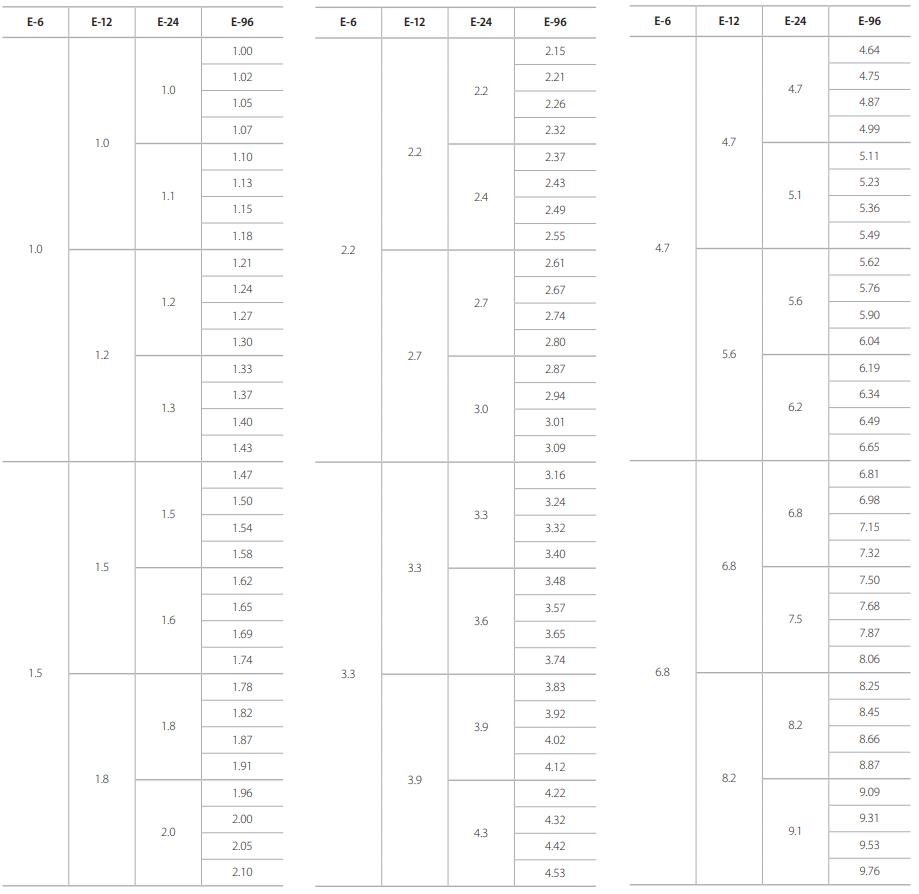 厚聲電阻標(biāo)準(zhǔn)阻值參數(shù)表大全